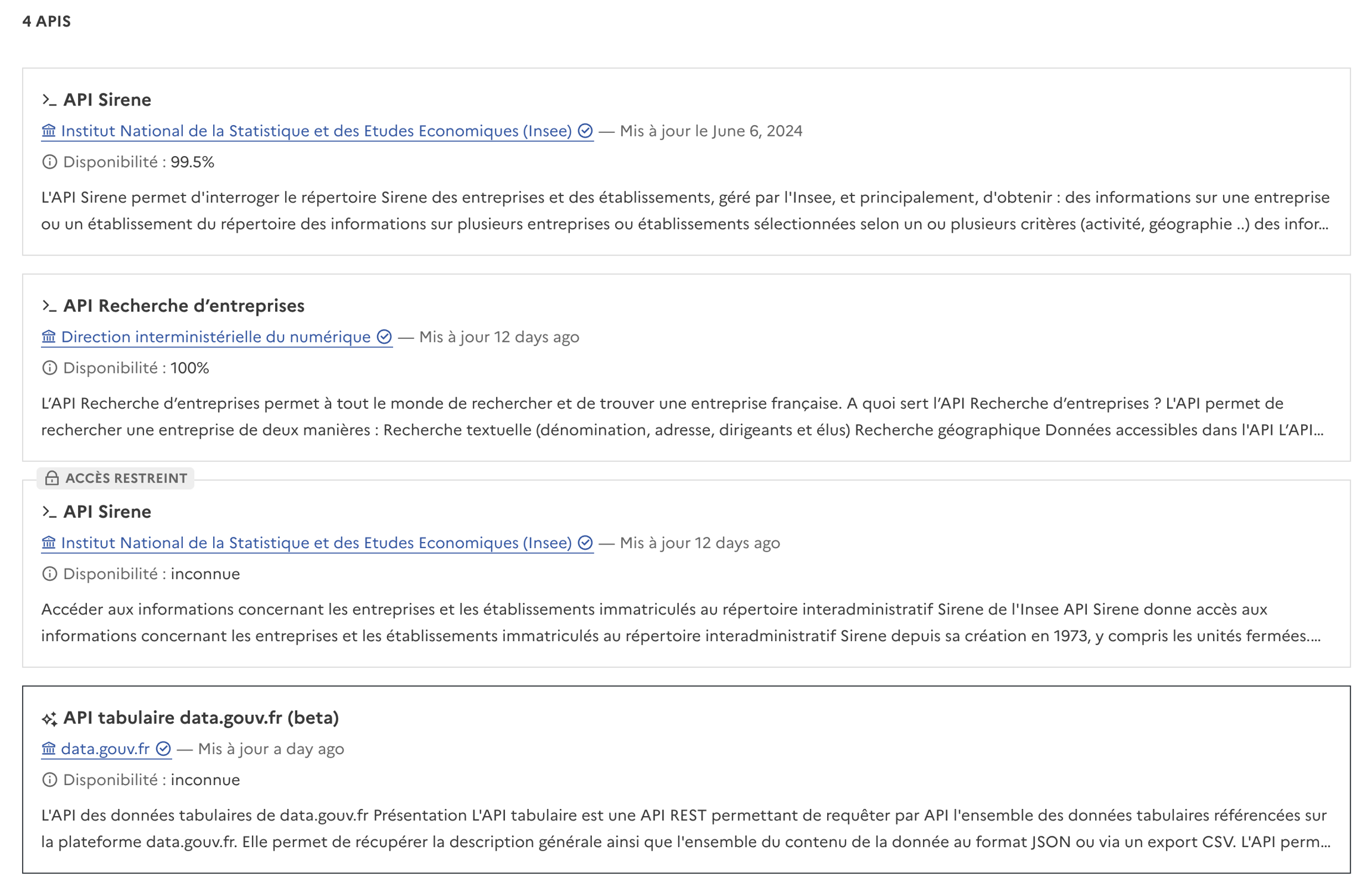 L’accès aux API à accès restreint se fait par demande du réutilisateur (administrations, éditeurs, entreprises…).