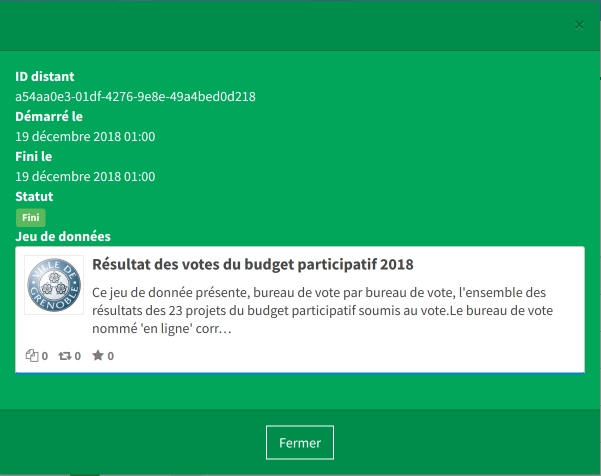Chaque moissonnage donne lieu à un rapport accessible depuis l’interface d’administration de data.gouv.fr. Il vous permet de comprendre ce qu’il se passe et, le cas échéant, de corriger les erreurs existantes et de vérifier le filtrage.