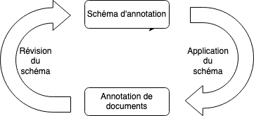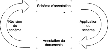 Elaborer un schéma d'annotation nécessite de prendre en compte à la fois la problématique du projet et les caractéristiques des documents à annoter. Ainsi, l'approche itérative préconise d'élaborer un premier schéma d'annotation répondant à la problématique, de le tester en annotant des documents puis de le réviser au fur et à mesure de l'annotation. C'est en général en annotant que l'on s'aperçoit si le schéma d'annotation est adapté ou non aux documents.