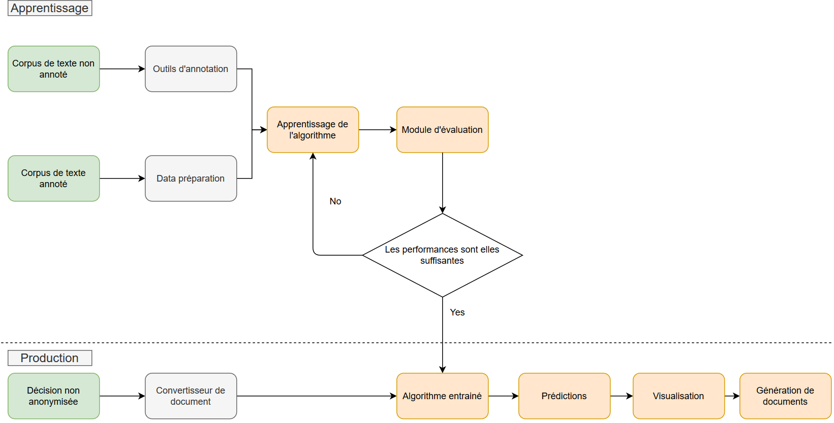Après avoir vu dans les grandes lignes les étapes d'un projet de pseudonymisation grâce à l'IA, nous revenons plus en détails dans cette partie sur ces différentes étapes pour présenter les choix, arbitrages et préconisations techniques que nous avons tirés de nos travaux pour la création d'un moteur de pseudonymisation pour les décisions du Conseil d'État. Ceux-ci sont disponibles sur GitHub.